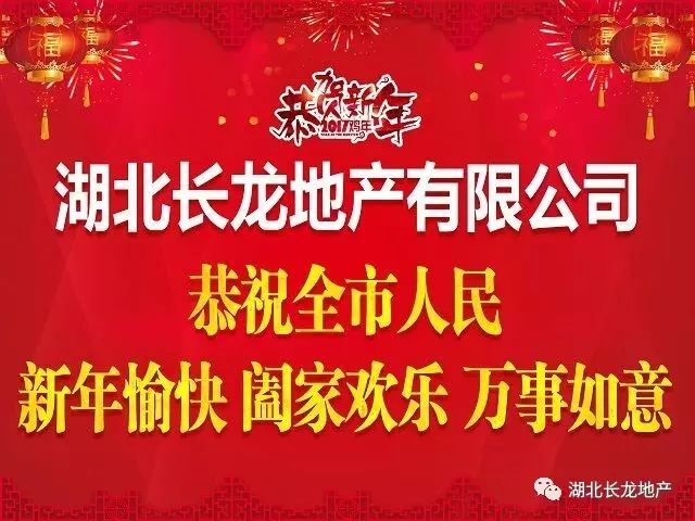 值此新春佳节来临之际,湖北长龙地产全体员工祝全市人民新春快乐,阖家幸福!!!