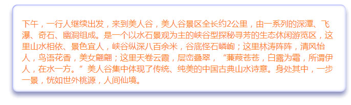 早上7点集合完毕之后出发,行程大约两个多小时之后到达茶花源风景区,以下为现场美照
